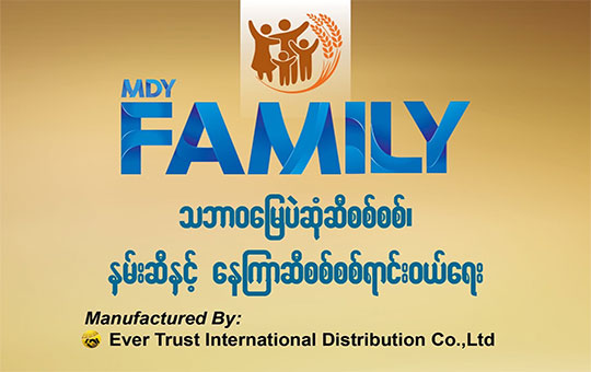 Ever Trust International Distrubution Co.,Ltd မှ Family အမှတ်တံဆပ်ဖြင့် ဆုံဆီ မြေပဲဆီစစ်စစ်ကို စင်္ကာပူနိုင်ငံ နှင့် ယိုးဒယားနိုင်ငံသို့ တင်ပို့ရောင်းချလျက်ရှိပါသည်။